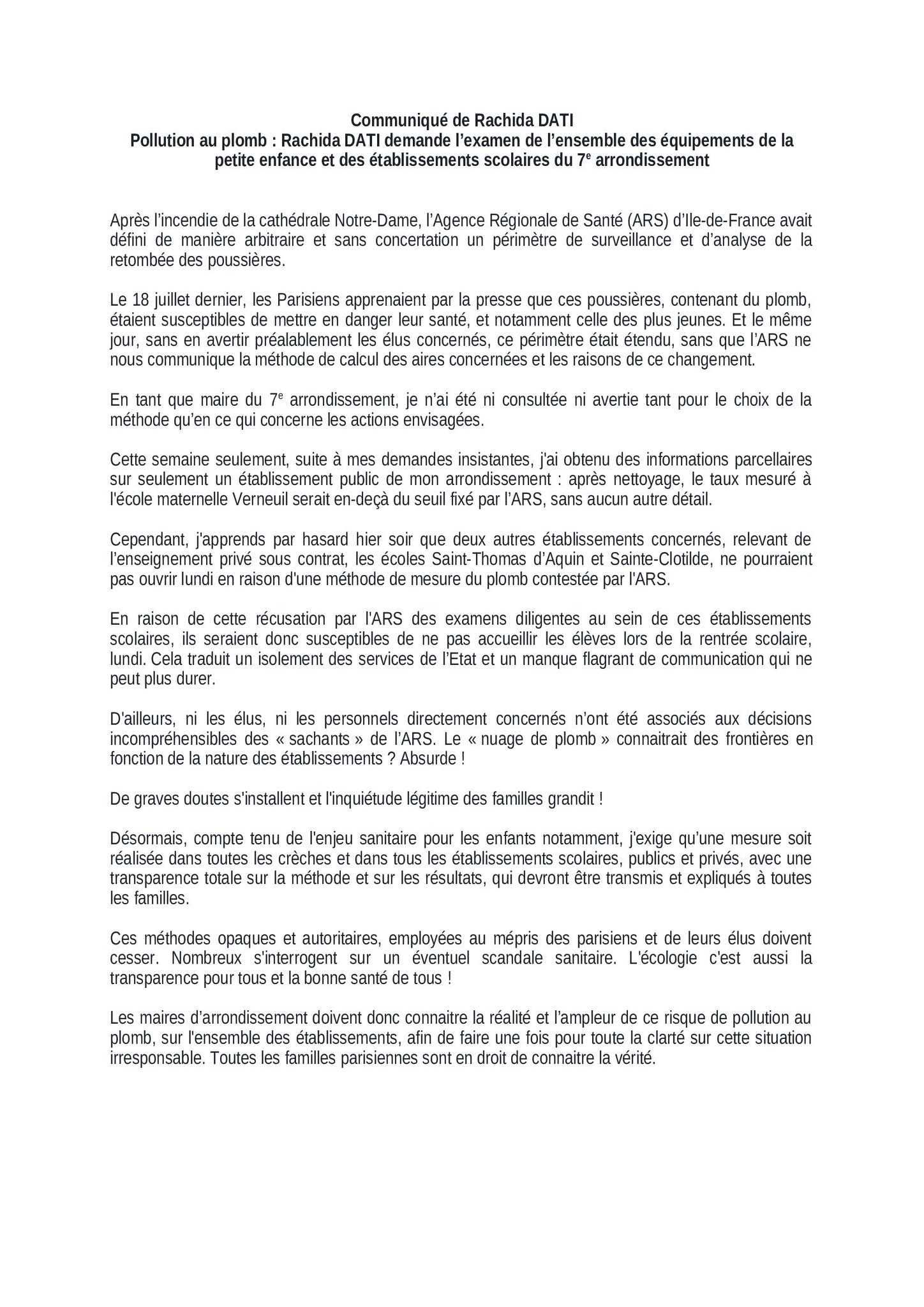 Rachida Dati ن On Twitter Pollution Au Plomb A Paris Retrouvez Mon Communique Paris Notredame