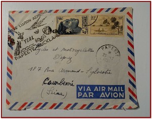 Timbres Enveloppe Liaison Papeete Auckland 1951 Aviation Vol