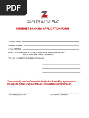 Internet Banking Form Zenith Bank Nigeria