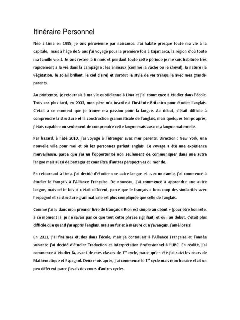 Itineraire Personnel Francais Ti 4 2013 1 Langue Francaise
