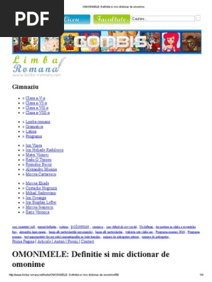 Omonimele Definitie Si Mic Dictionar De Omonime Pdf