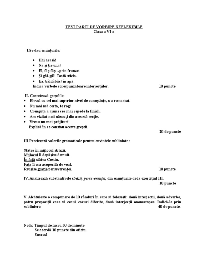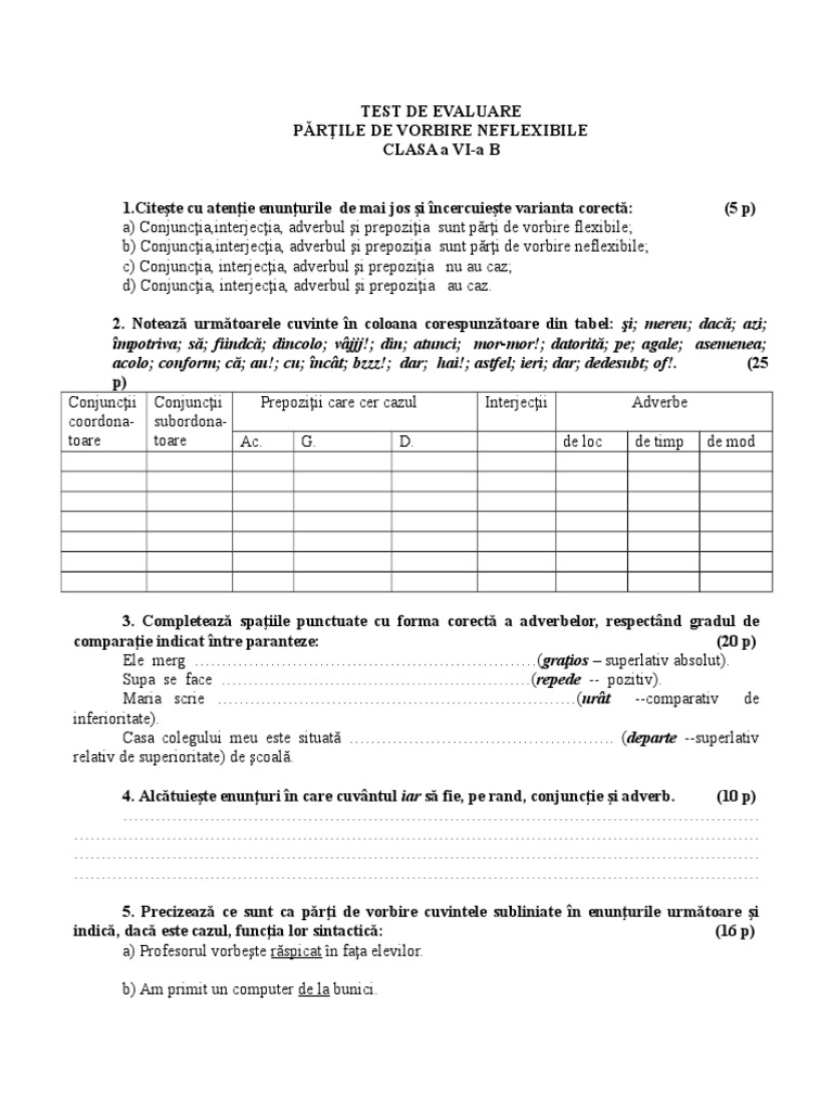Test De Evaluare Clasa A Vi A