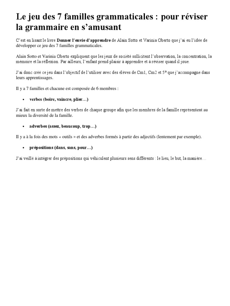 Le Jeu Des 7 Familles Grammaticales Nom Grammaire Pronom