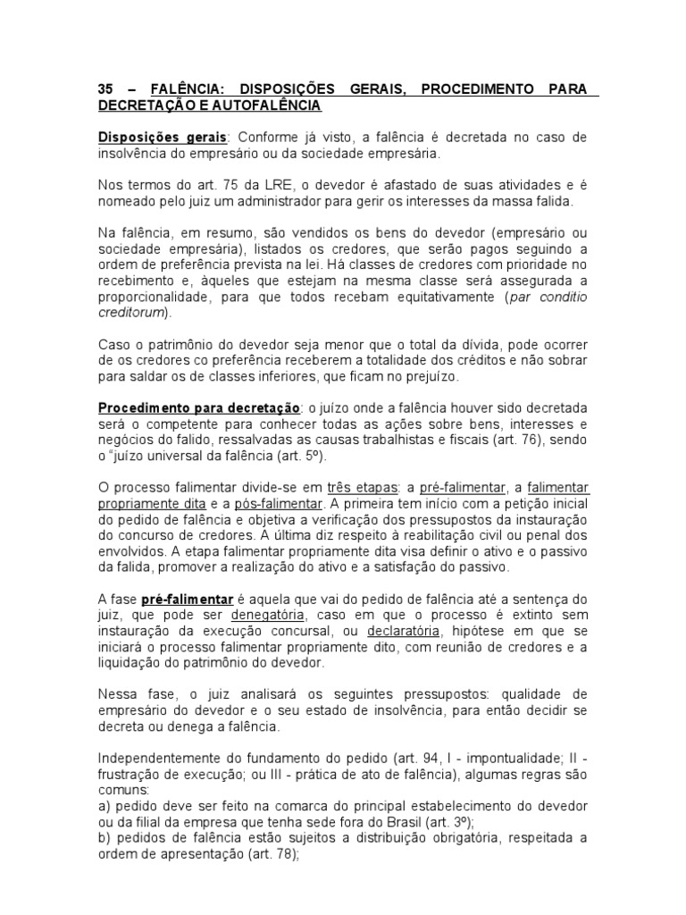35 Falencia Disposicoes Gerais Procedimento Para Decretacao E