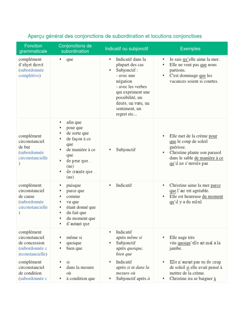 Apercu General Des Conjonctions De Subordination Et Locutions