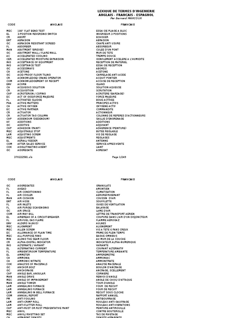 Dictionnaire Francais Anglais Espagnol Sofresid Coke Charbon