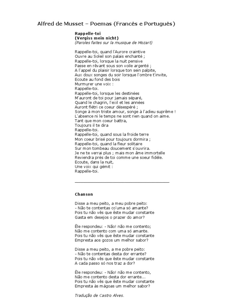 Poemas De Alfred Musset Frances E Portugues Natureza