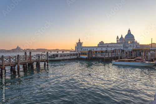Venice Italy January 02 2018 Vaporetto Terminal At Sunset In