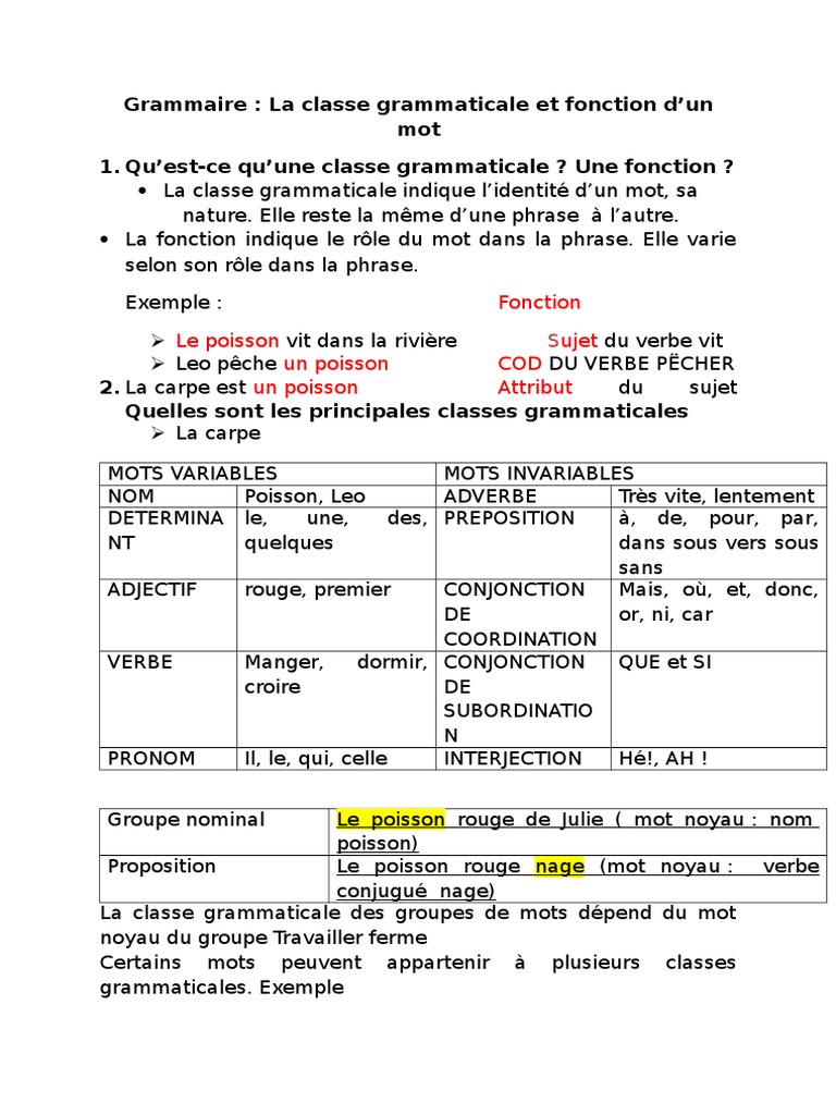 Les Classes Grammaticales Definitions Exemples Mots Variables