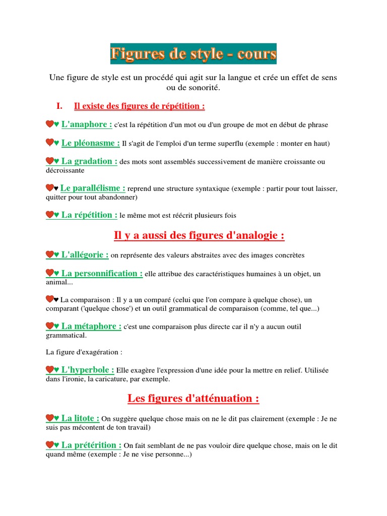 Les Figures De Styles Les Figures De Styles Sont Un Procede D Ecriture