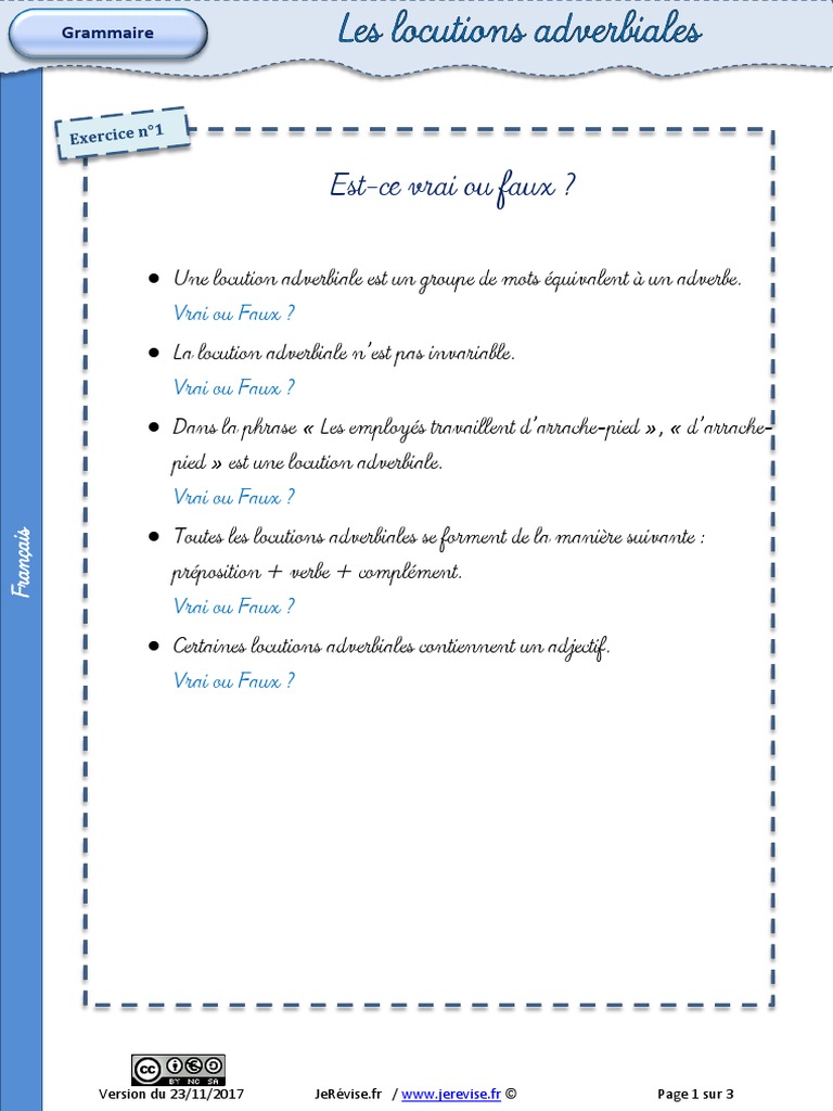 Exercice Locution Adverbiale Pdf Grammaire Onomastique Free
