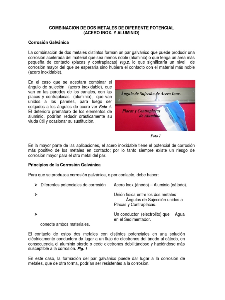 Par galvanico inox aluminio. Consideramos interesante explicar un poco que es el par galvánico. Um exemplo espectacular de corrosão galvânica ocorreu na estátua da liberdade quando os trabalhos regulares de manutenção periódica nos anos 80 do século xx revelaram a existência de corrosão entre as chapas do revestimento exterior de cobre e a estrutura de suporte interior de ferro forjado apesar de o problema ter sido antecipado em 1880. En alguna ocasión se puede haber planteado la duda sobre la utilización de accesorios de latón junto con tuberías fabricadas en otro tipo de metal por los posibles efectos perjudiciales sobre la instalación. La presencia del aluminio acoplado con el acero galvanizado incrementa la densidad actual rango de corrosión del zinc solo del 0 1 al 1 el aluminio es el cátodo o el lado protegido del par 10 este incremento en el rango de corrosión del zinc es insignificante y por lo tanto el contacto entre el aluminio y el acero galvanizado no acelera significativamente la corrosión de ninguno.