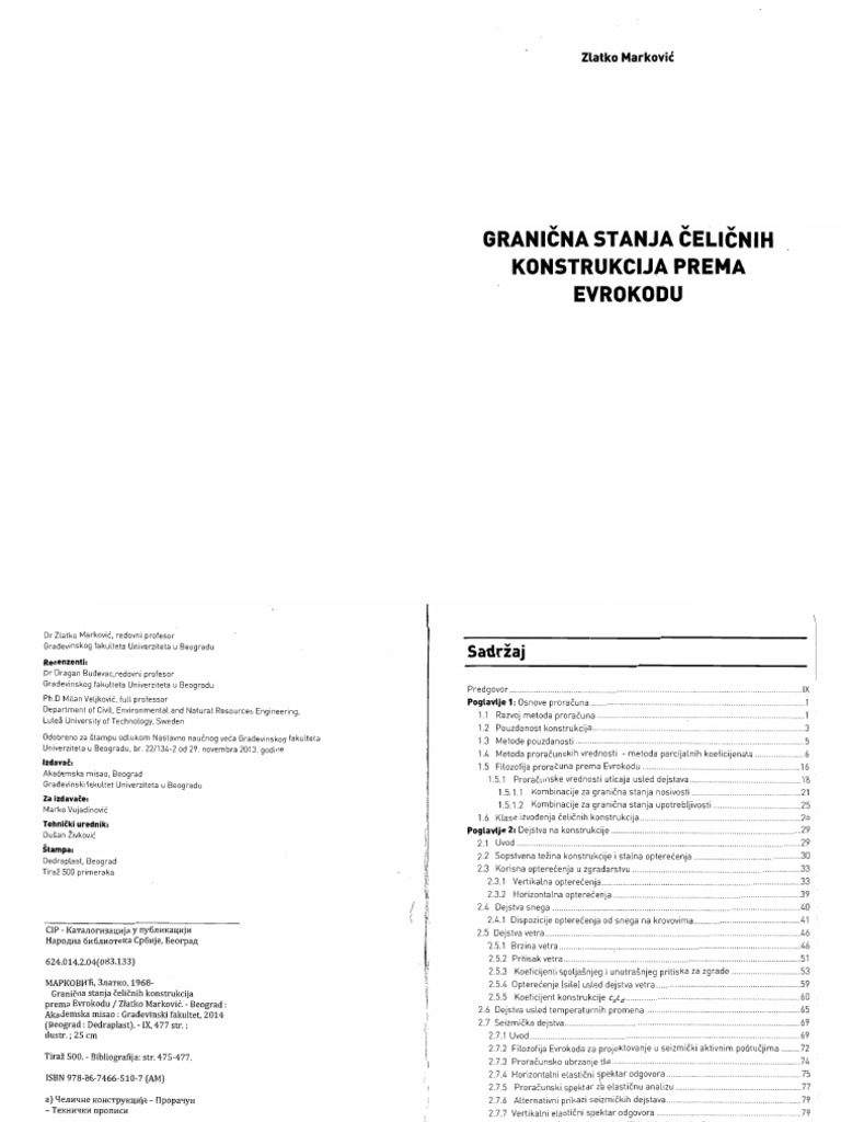 Granicna Stanja Celicnih Konstrukcija Prema Evrokodu Zlatko Markovic
