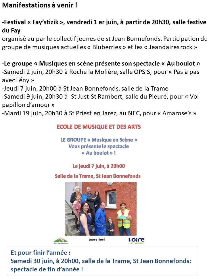 Ecole De Musique De Saint Jean Bonnefonds Manifestations A Venir