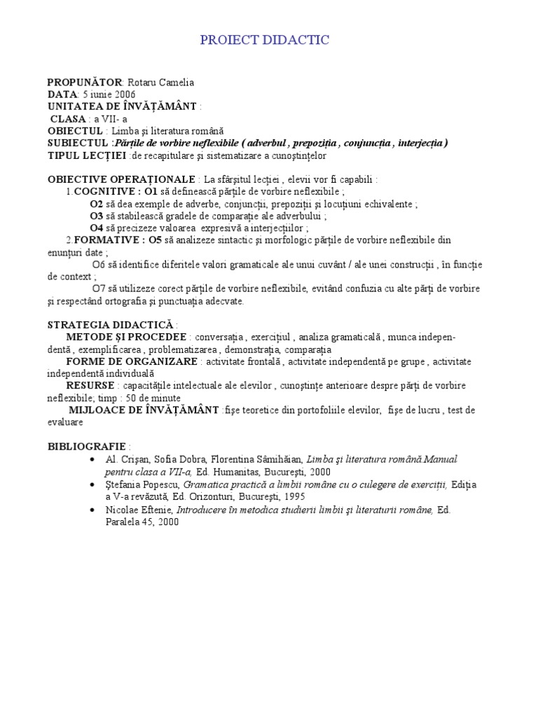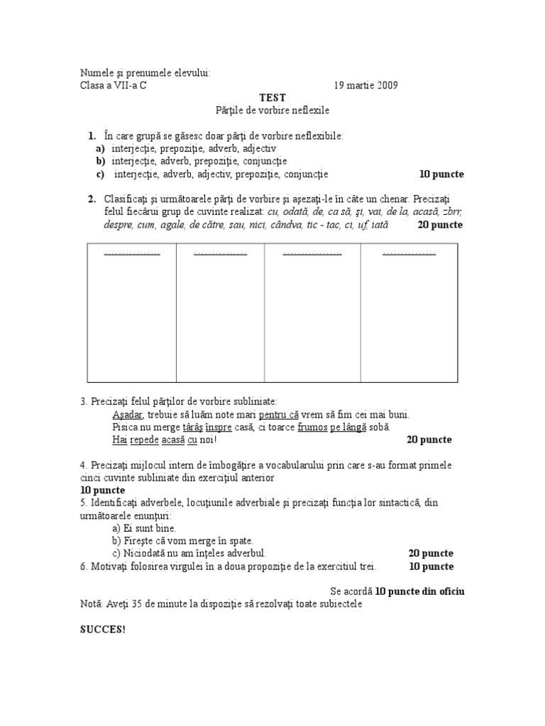 Test Părți De Vorbire Neflexibile Clasa A Vii A