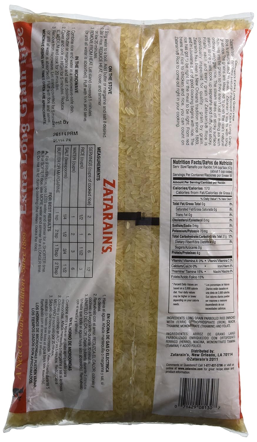 Amazon Com Zatarain S Extra Long Grain Parboiled Rice 10 Lb